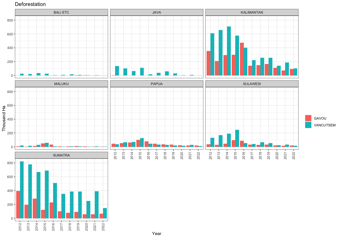 Overall deforestation by island and national