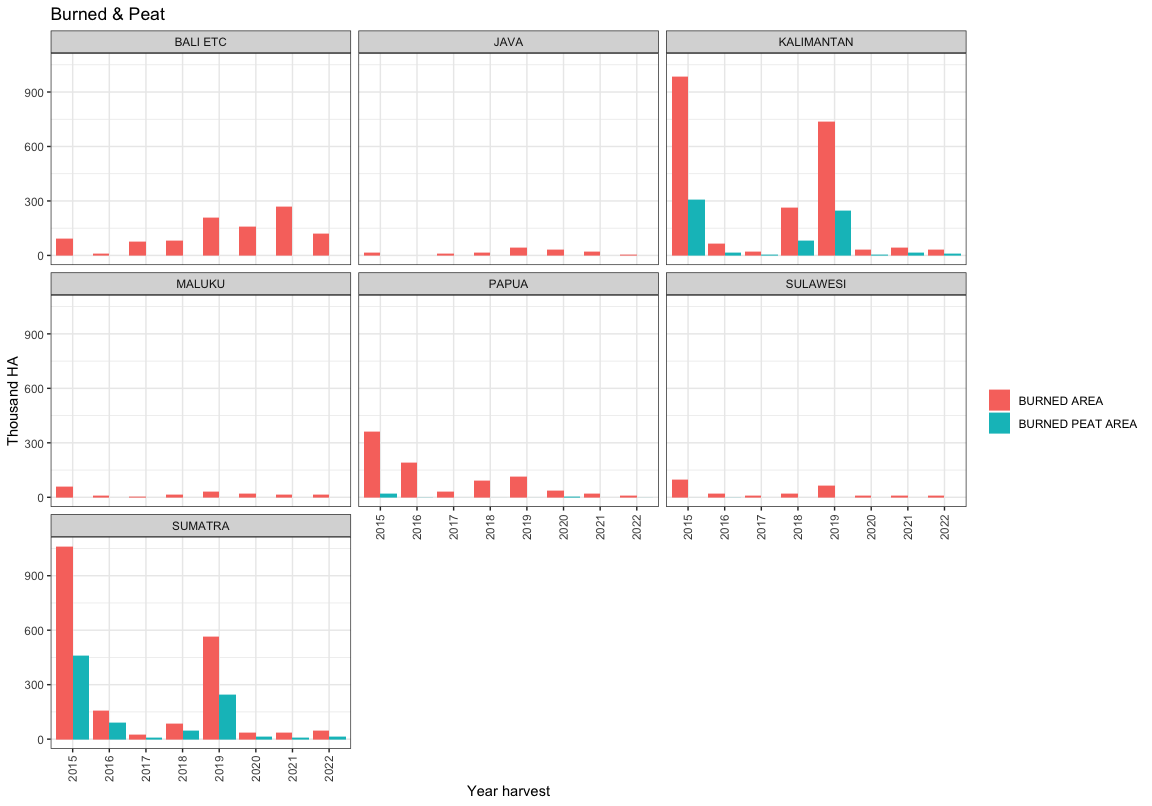 Burned area from MoEF and Indonesias oficial peat map (see woodpulp documentation)
