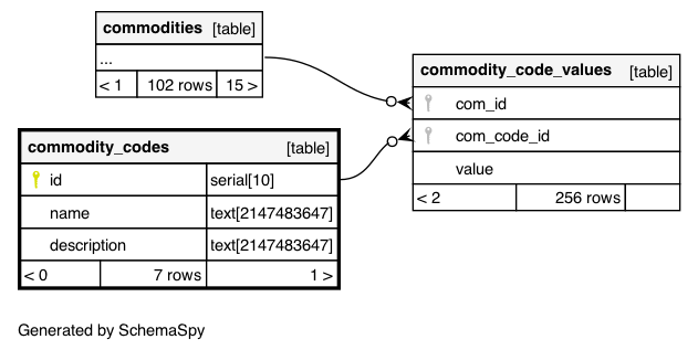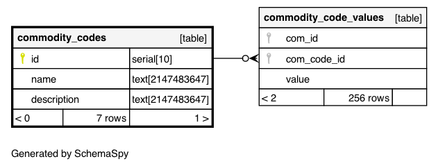 | id | serial | 10 | √ | nextval('commodity_codes_id_seq'::regclass) |