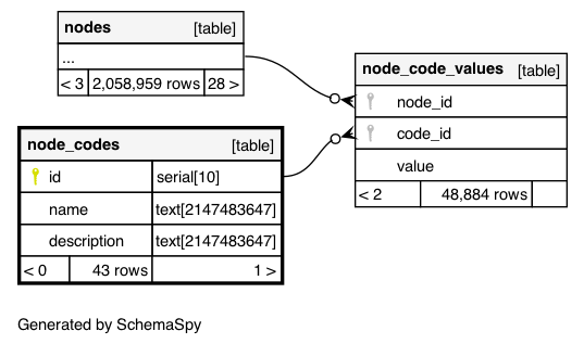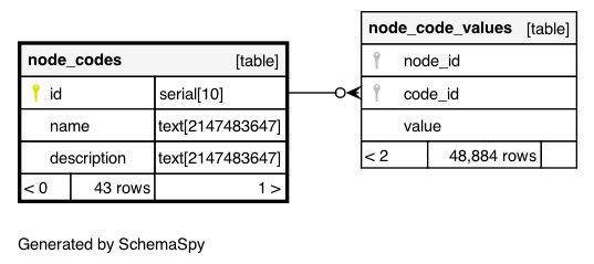| id | serial | 10 | √ | nextval('node_codes_id_seq'::regclass) |
