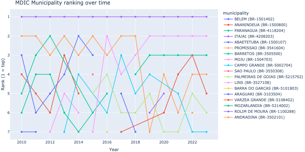 MDIC Bump chart ranking municipalities