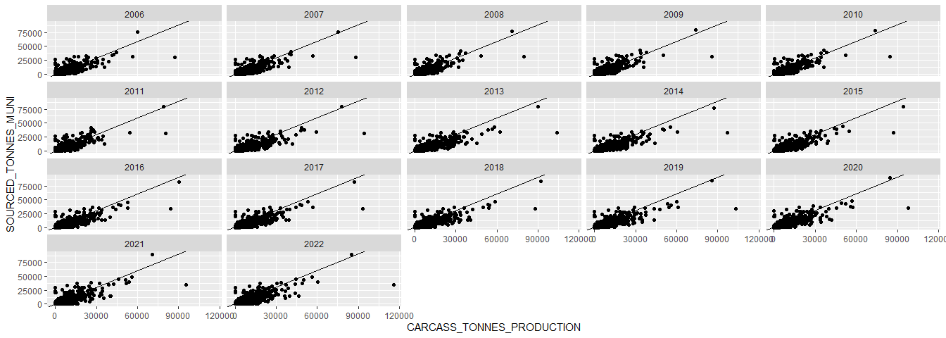 - We could extend to include 2023 cattle, but this would be out-of-sync with the other commodities (which have older data), and require more work in cleaning the slaughterhouse list, which we probably don’t have time for given Janne’s timeline.