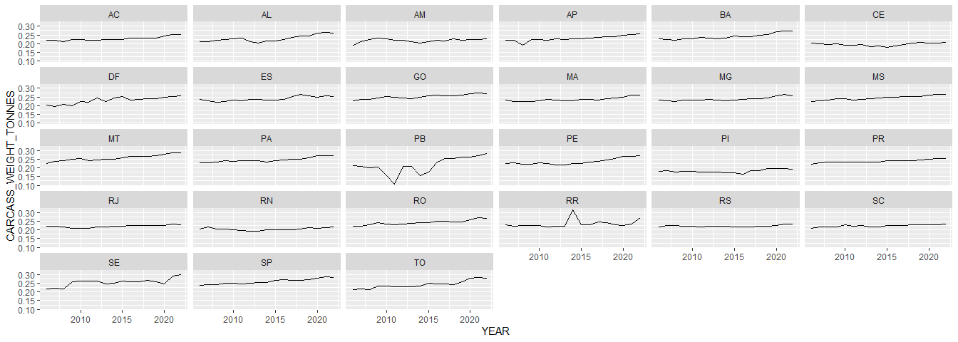 # Code adapated from scripts/PESQUISA/SLAUGHTER/ESTIMATE_NATIONAL_SLAUGHTER_VOLUME.md